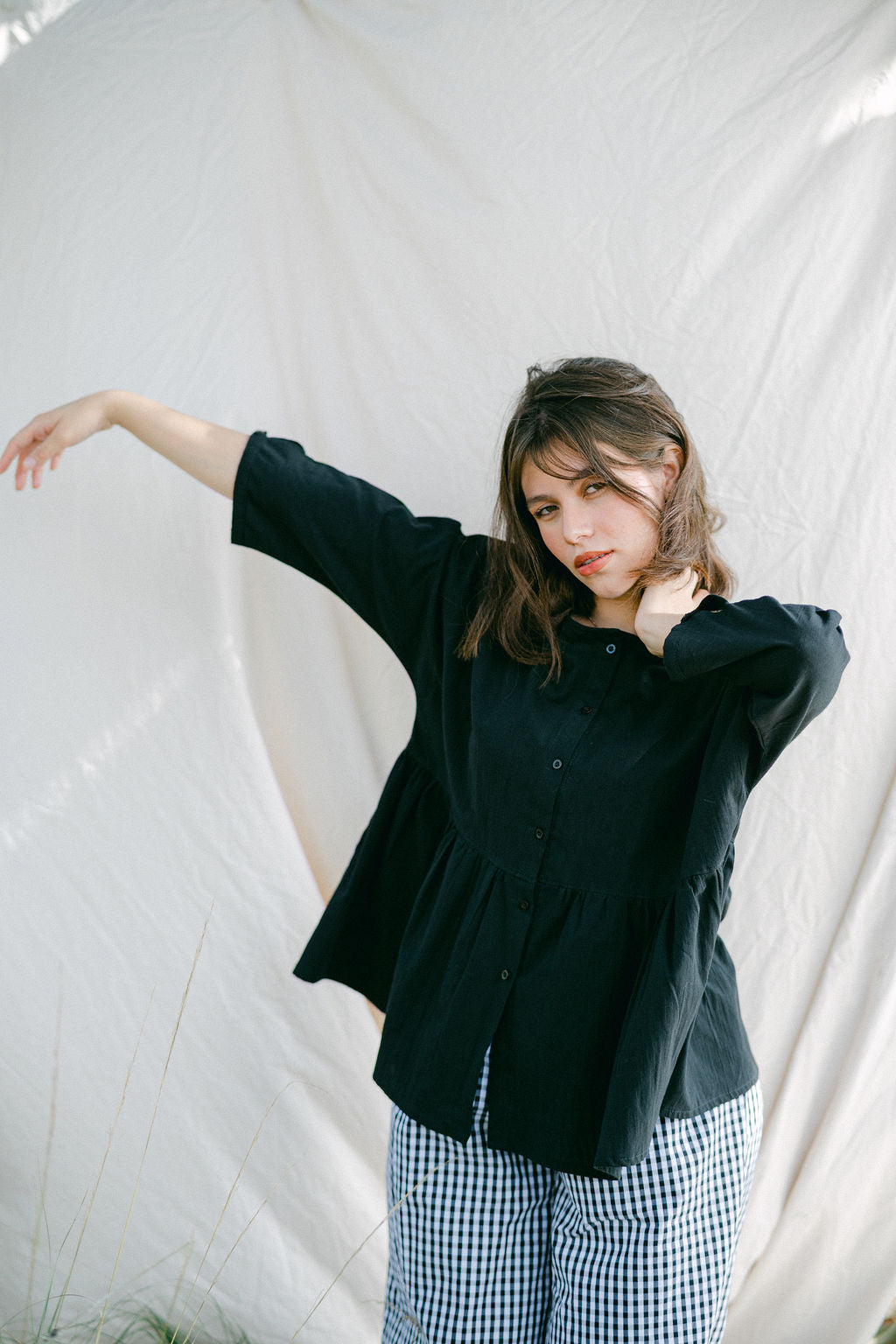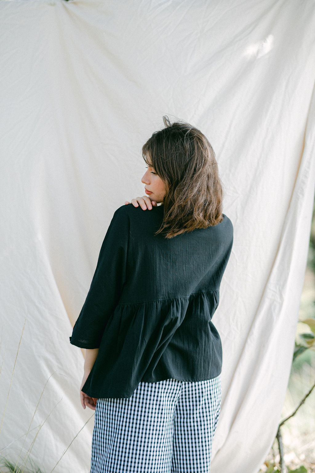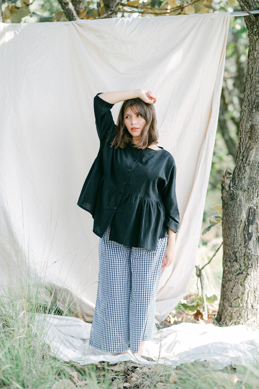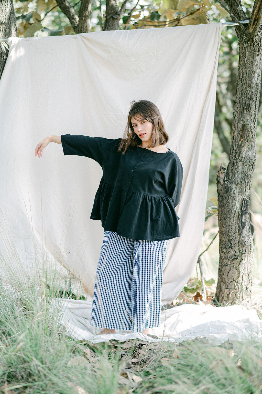 El Top Josefina combina suavidad y sencillez en una pieza hecha con algodón ligero. Su silueta holgada y manga tres cuartos invitan al movimiento libre, mientras los botones al frente añaden un toque clásico y natural. Pensado para acompañarte día a día, su esencia está en la comodidad y el detalle.